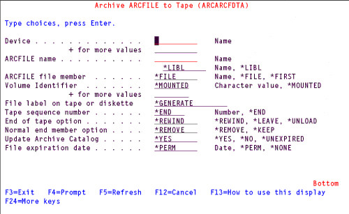 | SpoolOrganizer archiving commands support the concept of an ARCFILE, which is a physical file member which can hold the contents of an archive run. It is similar in concept to an OS/400 save file. Using an ARCFILE SpoolOrganizer can archive spool entries even though no tape device or optical is available (or can run unattended at night) then move the contents of the ARCFILE to tape or optical at a later time. The ARCARCFDTA and OPTARCFDTA commands move the contents of an ARCFILE to tape and optical. |