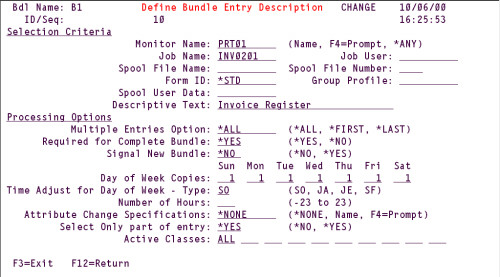 | The administrator next defines each spool entry to place into the Bundle, and defines some processing options. Monitors will send matching spool entries to the Bundle Manager to be included into Bundles. Processing Options for Bundle Entries include: