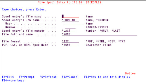 DIRSPLE command writes a specified spool entry to an ASCII file in an