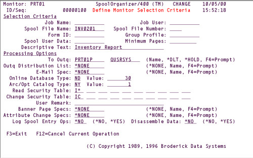 operations on different spool entries. Using Monitor Selection